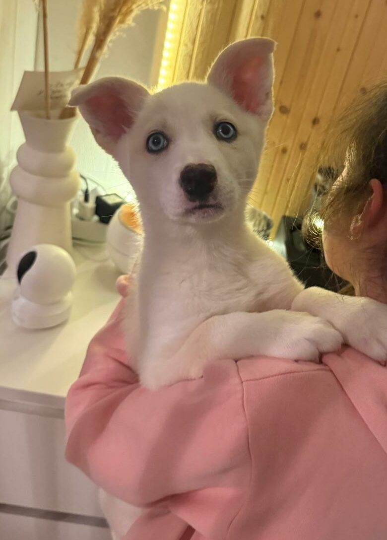 Scarlett est une jolie chienne croisée Husky de Sibérie de 2 mois que nous avons prise en charge suite à son abandon.